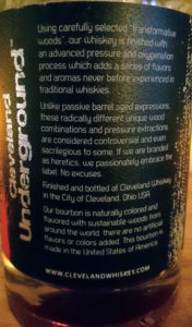 クリーブランド・アンダーグラウンドというプロダクトで、独自のエイジングプロセス:圧力管理と酸素コントロールとオーク樽の焼き入れ技術など、新しいアプローチで伝統的ないままでの長期熟成バーボンと同程度の味わいを目指したウイスキーです。