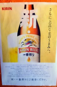 冬季は生サーバーをお休みして「新・一番搾り」の小瓶をお出ししています