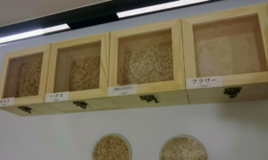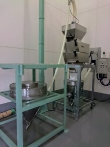 桜尾のモルトミルは特注品だそうで、真ん中にある二つの台形の装置がミルです。レバーで瞬時に挽く粗さを調節できるようになっています。